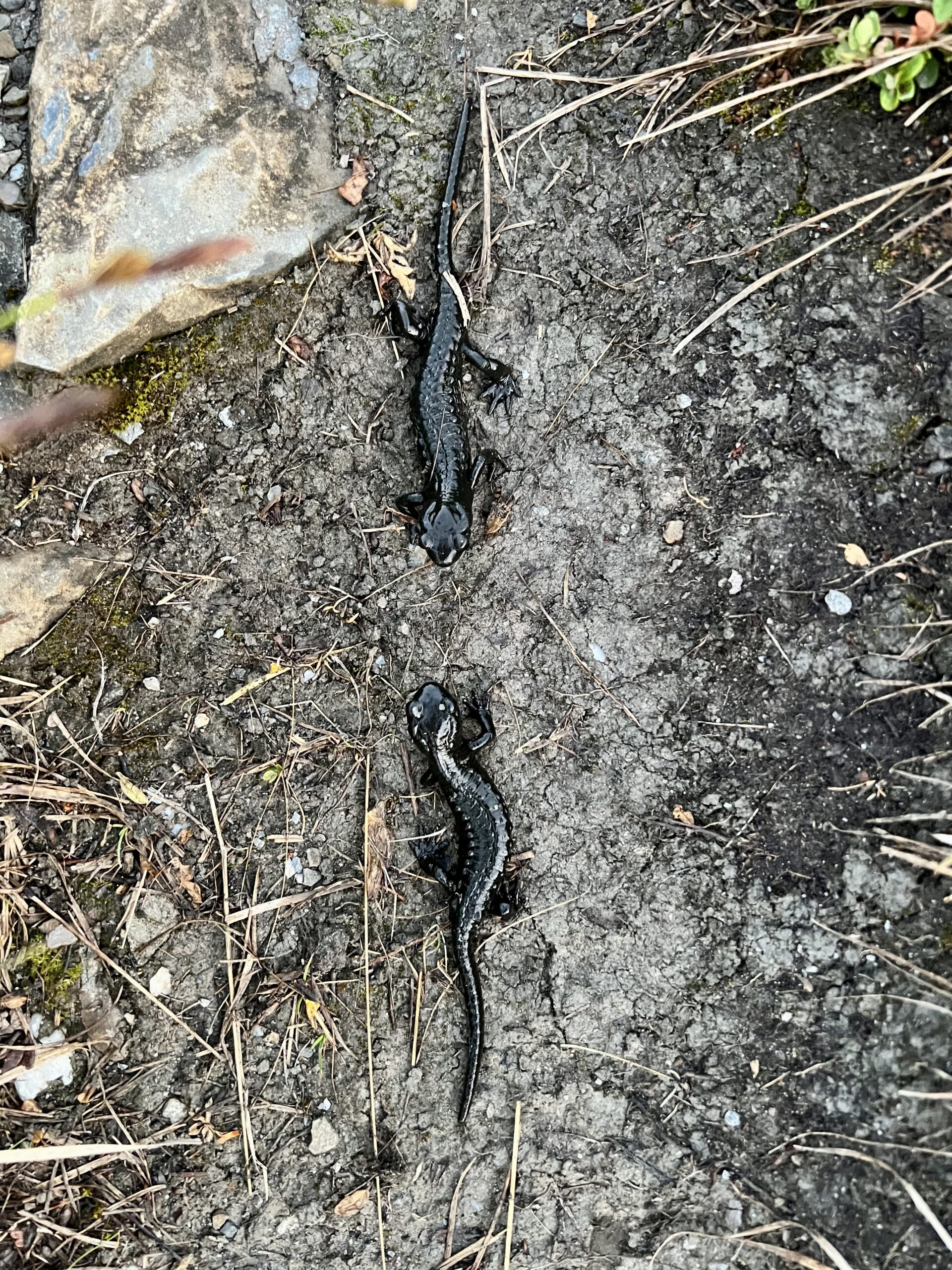 Der Wanderweg ist gesäumt von Alpensalamandern.