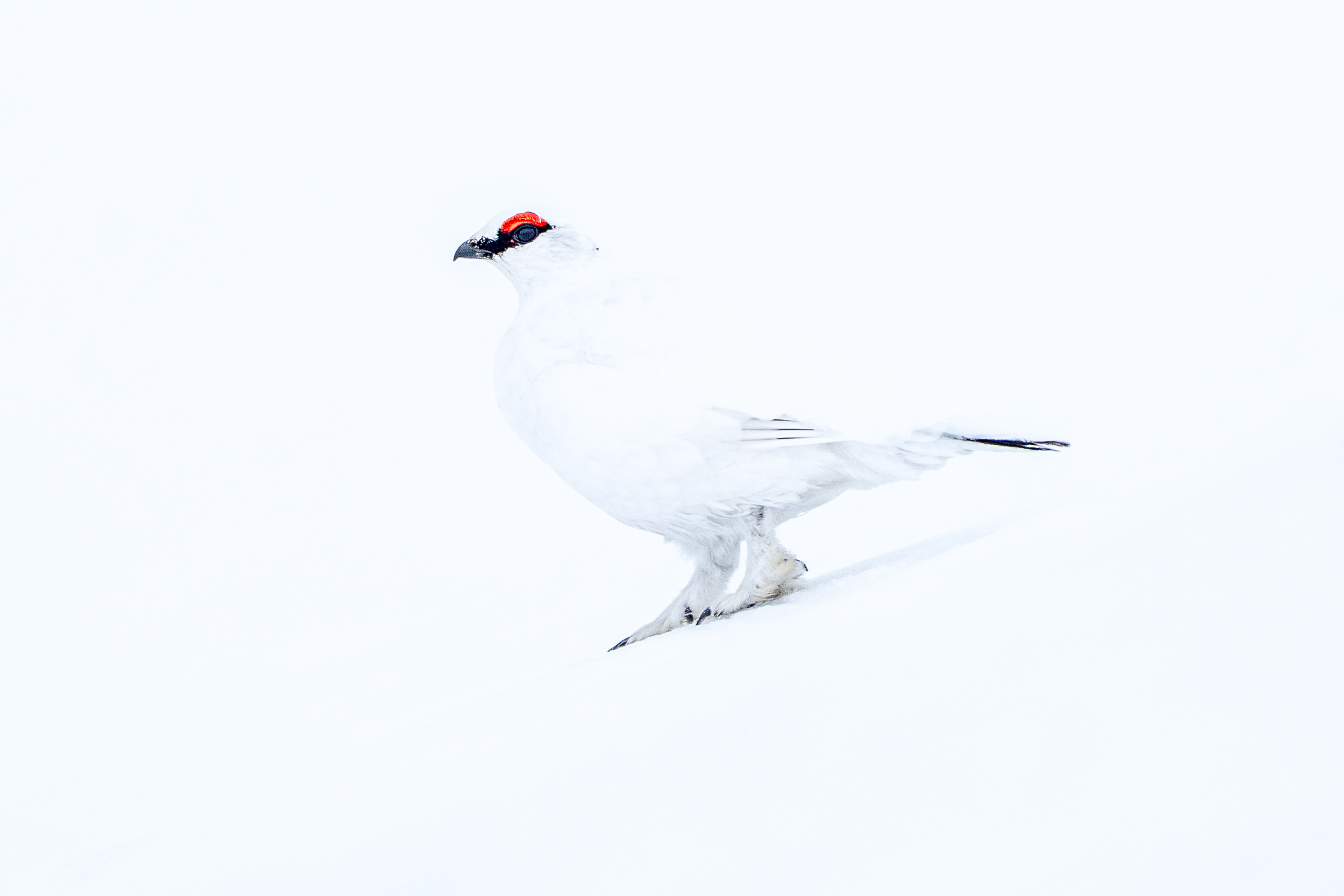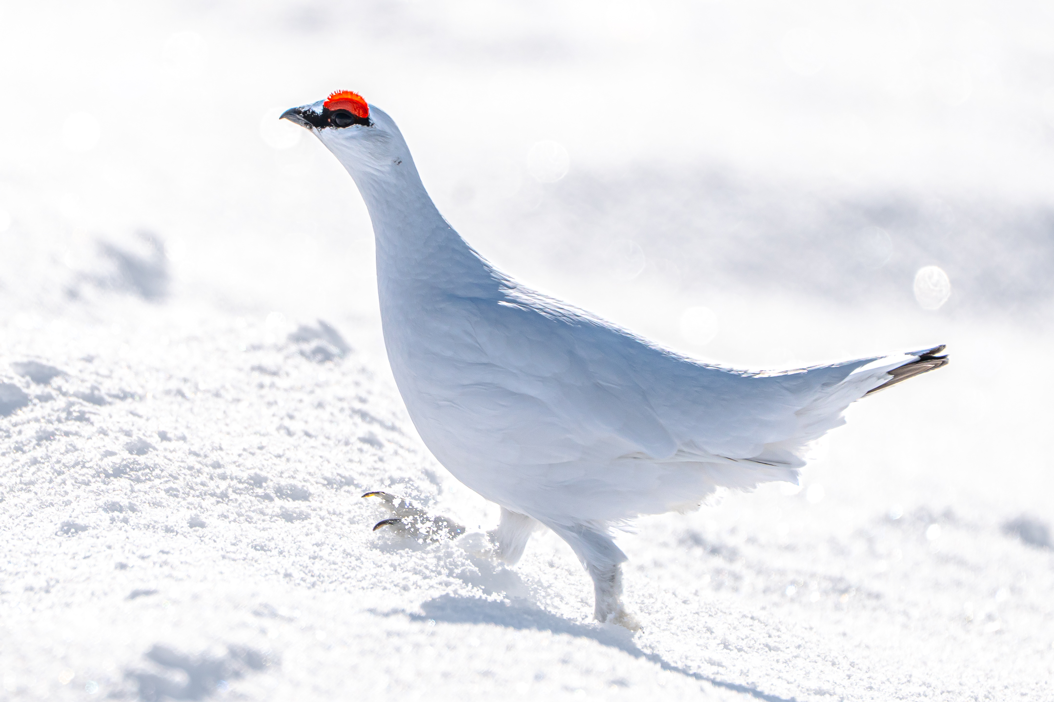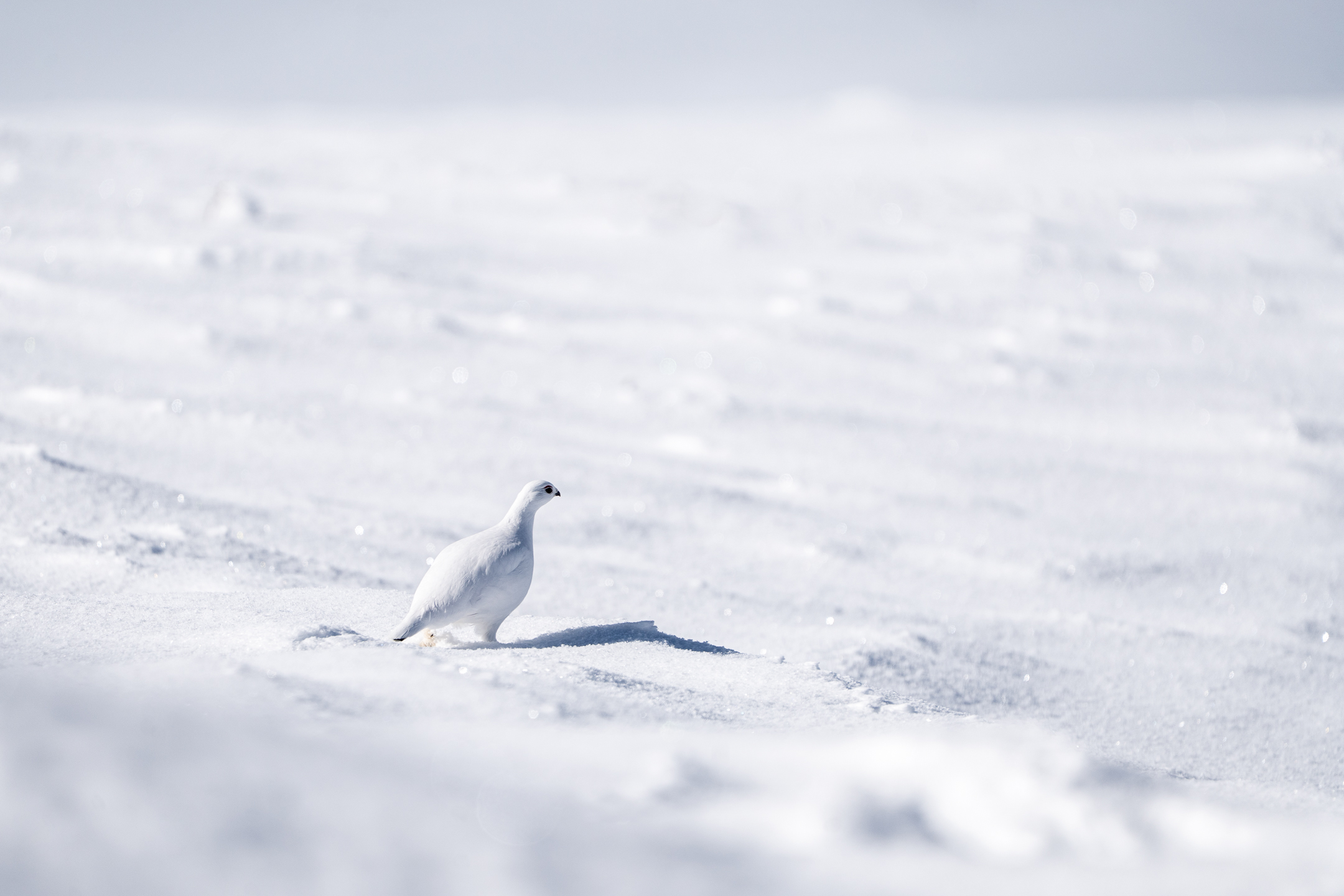 Dieses Wissen über das Licht nutzte ich im Bild oben: Als die Sonne gerade dabei war, hinter einer Wolke hervorzukommen, entstand diffuses Licht. Zusätzlich befand sich das Schneehuhn im Halbschatten.