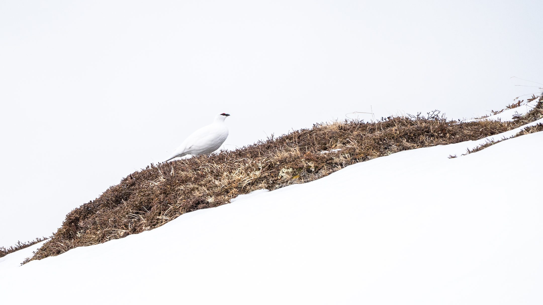 Als ich mich ein Stück höher den Hang hinaufbewegte, konnte ich nun auch den kugeligen Oberkörper des Schneehuhns aufnehmen.